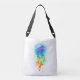 Água-viva grande, iridescente, desenhada artisticamente, brilhante, com longos tentáculos em branco, pintada sobre fundo de aquarela multicolorido. Água-viva arco-íris.