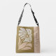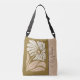 Anos setenta Retro Peach-Ivory-Brown Solteiro Flor Bag Crossbody. Flores bonitas e coloridas do estilo 70 em marfim, sotaque de pêssego em padrão de fundo marrom. Muita tendência com aquele retrô sentir design. Fácil de editar com nome para você ou para um amigo. Um presente na moda, de moda para cada mulher.