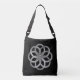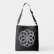 Bolsa da moda com mandala prateada boho chic em fundo preto. Design elegante preto e prata!