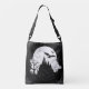 Bolsa Gótica de Castelo e Lua. © Dark Heart Desires. Esta bolsa transversal ou de ombro tem um design de uma grande lua com uma silhueta de castelo gótico contra ela.