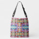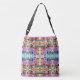 Um padrão caleidoscópio vibrante, com várias cores e designs geométricos abstrato, cria um efeito visualmente dinâmico. Vários elementos aparecem simetricamente através da design, incorporando imagens como pandas e splatters.