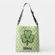 This personalized kawaii shamrock crossbody bag features a cheerful, three-leaf clover with a sweet, blushing face and large, sparkling eyes. With its thick, bold black outlines and vibrant green shading