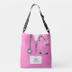 Saco de enfermeira criativa com design médico com esfregões rosa criativos para a sua enfermeira, médico ou assistente médico favorito. Editar texto para adicionar nome.