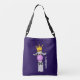 Saco com lama branca soprando uma grande bolha rosa. Vestindo uma coroa dourada e uma gravata arco preta. Fundo roxo escuro. Personalize com um nome.