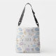 Esta bolsa de corpo cruzado personalizada das crianças apresenta uma ilustração esquisita de estrelas lúdicas, luas em crescente e nuvens fofinhas com aquarela pastel macia.
