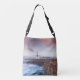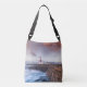 Farol da Inglaterra nos penhascos da Inglaterra com as ondas do oceano se chocando contra as costas enquanto a névoa do mar espalha a pequena aldeia costeira. Esta bela imagem pitoresca faz você sorrir.