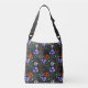 A "Flora Crepúscula" apresenta flores vibrantes e arrojadas em roxo, laranja e verde, colocadas sobre um fundo escuro. Este padrão marcante adiciona um toque de elegância e mistério, perfeito para qualquer espaço moderno.