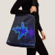 Uma imagem fractal 3D simples, de tom azul, parecida com uma espaçonave estilizada sobreposta a um fundo estrelado. Os anéis concentrados (ondas gravitacionais?) emanam da espaçonave para o aparente vazio do espaço. Uma aura azul clara envolve a espaçonave, talvez o resultado seja mais rápido que o viagem da luz. Adicione seu próprio texto.