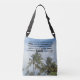 Palmeiras balançando no ar quente do Havaí. Uma palavra colage com palavras que você pensa quando ouve a palavra "Havaí! Um saco de corpo cruzado para todos os seus viagem essenciais, vem em tamanho médio ou grande, de modo que você pode adicionar alguns itens extras se quiser carregar muitos doces quando você viagem