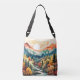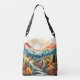 Este saco super colorido de corpo cruzado apresenta uma ilustração de uma vista cênica de montanha. Esta bolsa faria uma maravilhosa ideia de presente para amigos e família.
