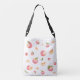 Este lindo padrão de impressão de pêssego torna esta bolsa de corpo cruzado uma doce escolha para viagens de viagem e visto diário. Apresenta um pêssego de cor d'água solteiro na parte frontal e o padrão de pêssego no verso.