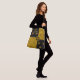 Crossbody Bag preto e dourado com o logotipo marrom e dourado Y-NOT-ME à frente, com linhas horizontais e verticais douradas atrás dele e com os logotipos Y-NOT-ME ao fundo também com "GO AHEAD-You CAN DO IT" no topo da frente. Esta design é um encorajamento para todos, não tenham medo, façam o melhor que puderem. Tente aproveitar o que você faz, fique com ele.