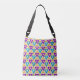 Esta bolsa de corpo cruzado tem um design de Bauhaus de triângulos repetidos em ouro, turquesa, chalé, roxo e ouro leve. Se você gosta do design, mas prefere cores diferentes, me mande mensagem.