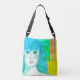 Minha pintura colorido de abstrato de uma mulher com cabelo azul faz desta deliciosa bolsa de ombro uma obra de arte engraçada!