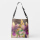 As orquídeas estão florescendo de novo no jardim, na fotografia original de ZoeSPEAK neste Tote Bag de corpo cruzado. As flores, que emergem de um caule verde-curvo, têm centros roxos que se misturam ao amarelo nas pontas das pétalas. O fundo natural da madeira desencadeia as formas e cores esculturais.