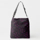 Padrão de aranha em rosa quente no saco de tote preto. Acessórios incríveis.