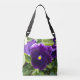 Em destaque está um profundo Pansy Roxo crescendo em um arbusto.