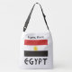 Design neste saco de cruzamentos está a bandeira do Egito ou a bandeira egípcia com a palavra EGYPT por baixo, em letras negras. No topo está um espaço para seu nome, para um efeito personalizado ou presente personalizado. Excelente maneira de compartilhar seu amor pela cultura egípcia, patrimônio, ancestralidade. Ou para lembrar de férias ou viagens. Ótima ideia de presente!