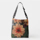 Esta mala de carrinho apresenta flores coloridas de pêssego bonito crescendo em um jardim de Connecticut.