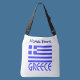 O saco de cruzamentos personalizado apresenta a bandeira grega e a palavra, ou a GRÉCIA de nome abaixo a azul. A bandeira mostra faixas azuis e brancas com uma cruz azul e branca na área superior direita. Acima dele, adicione seu nome para um toque personalizado ou crie um presente. Divertido para reuniões familiares. Excelente para celebrar o Dia Oxi.