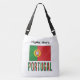 Bandeira portuguesa com a palavra PORTUGAL, nas cores da bandeira. Adicione seu nome ao espaço fornecido para uma aparência personalizada neste saco de corpo cruzado. Se você precisar criar um presente personalizado, adicionar o nome de outra pessoa fará o truque.