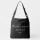 Bolsa/bolsa de corpo da Cruz Negra "O passado é um lugar perigoso para se visitar". Bolsa/saco resistente e leve para qualquer ocasião. Especificações do produto: Dimensões: 18" l x 18" w; Precinta: 43" l (totalmente estendida) Material: Exterior: poliéster escovado resistente a 100 % Interior: 100 % de poliéster de 100 % de precinta de poliéster com fivela de fecho plástica Ajustável para ajudar a encontrar o ajustado perfeito Três bolsos interiores; uma impressão não riscada Serem seguidamente costurados para designs de borda a borda, apenas para mancha ou limpeza a seco Fabricados nos EUA