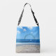 Saco de compras do dia da Terra - Cena do oceano costeiro com praia e nuvens "habite a beleza" nome personalizável ou sua frase favorita do dia da Terra "