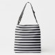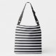 Este saco de corpo cruzado de na moda é mostrado em um impressão de listras brancas e pretas agudas com tiras pretas. Personalize este saco ou comprar como está. Tamanho grande é mostrado; você pode escolher outro tamanho e estilo se desejar.