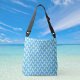 Escada mediana de corpo cruzado em formas refletoras de rabisco de turquesa em uma cor base azul.