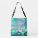 Sacola do monograma das notas e das luzes da música. Notas musicais no verde azul, na lavanda e no roxo de turquesa em um abstrato do verde e da lavanda da hortelã. Preencha seus nome e inicial no alerta para personalizar e personalizar como desejado. Seu músico ou melómano favorito amá-lo-ão.