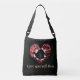 Zwarte tas met rood open hart met de Vishnuh kroon en de tekst Love Yourself first. Het belangrijkste in het leven.