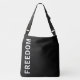 Saco preto e branco clássico e simples com texto da Freedom para um estilo simples e chic.