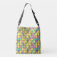 Esta bolsa de tote cruzado tem um design moderno do século médio de luas crescentoras dividido horizontalmente em três cores, rosa, azul, lavanda ou espuma, dividido ao meio e espalhado em uma grade com fundo amarelo. Se você gosta do design, mas quer cores diferentes, me mande mensagem.