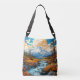 Este saco de cruzamentos bonitinho apresenta uma ilustração criativa e colorida da paisagem da montanha do vale do rio. Este saco de compras faria uma maravilhosa ideia de presente.