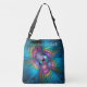Uma imagem fractal multicolorida, girando, parecendo asas texturizadas em torno de uma esfera central. A imagem fractal é repetida em miniatura na esfera. Adicione seu próprio texto.