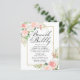 As rosas cor-de-rosa e as flores brancas brilhantes da hydrangea estão aninhadas em folhas verdes macios para criar arranjos florais elegantes que decoram uma espumante armação de ouro que rodeia seus detalhes do Luncheon Bridal. Este item é parte da Coleção de Chás de panela Blush Pink e White Floral.
