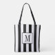 Este bolsa monograma parece elegante e na moda com listras pretas e brancas.