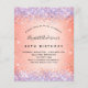 Para uma elegante festa de aniversário 40th (ou qualquer idade). Um fundo metálico laranja. Decorado com brilho de falso roxo. Personalize e adicione um nome e detalhes da parte. O nome é escrito com um script de estilo manuscrito