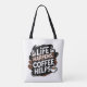 Comece seu dia com humor e estilo! Este design tipográfico ousado apresenta a citação "A vida acontece, o café ajuda" em um fundo preto elegante. Perfeito para amantes de café, combina vibrações divertidas com o estilo moderno. Uma ideia engraçada de café e uma camisa cafeeira engraçada deve ter!