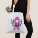 Esta bolsa de tote é mostrada em uma fita rosa de reconhecimento de cancer mama e impressão de arte de borboletas. Tamanho grande mostrado Personalize este item ou comprar como está. Imagem do stock vecteezy.com