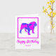 Silhueta de Bulldog Inglês em um padrão de abstrato moderno rosa quente e azul brilhante. Um dentro de mensagem de aniversário engraçado pode ser mudado para qualquer coisa que você quiser. Personalize com o nome abaixo do sentimento de Feliz Aniversário.