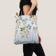 Saco de mão com design romântico em estilo vintage, apresentando listras em um fundo degradê azul poeirado elegante com flores bonitas. O rótulo é uma imagem separada e pode ser dimensionado ou excluído se você não precisar dele. Você também pode adicionar uma forma de fundo retangular personalizada para o(s) seu(s) texto(s). Ótimo para uma noiva ou qualquer pessoa relacionada ao casal, bem como para uma alma romântica.