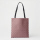 Esta bolsa Tote tem um fundo na cor rosa, Rosa Po dusty com bolinhas pretas. É destinada a qualquer pessoa que goste de acessórios elegantes de estilo boutique e designs minimalistas.