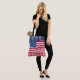 Esta bolsa de tote é perfeita para celebrar o 4 de julho e durante todo o verão, mostrada com estrelas patrióticas divertidas e bandeiras impressão. Tamanho grande mostrado Precinta preta. Personalize este item ou comprar conforme projetado.