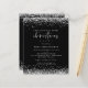 Um alternativo de 4,5 pol x 5,6 pol com preço inferior. Disponível em um STOCK DE CARTÃO SEMI GLOSS 110 lb, que é a opção padrão (recomendada para convites, semelhante à espessura de um cartão postal) OU um STOCK DE PAPEL THINNER FINISH DE 80 lb FINISH (ideal para gabinetes). Os envelopes são um extra opcional e são ligeiramente maiores que o tamanho da placa. Faux Silver Faux Glitter do Festa de Natal Black Invite. Uma borda de brilho está em cada lado superior e inferior, e o Natal está em um script de estilo de letra minúscula definido. Personalize facilmente o resto do texto para seus próprios detalhes. Você também pode alterar as cores do texto e do plano de fundo por meio da opção personalizar mais, se desejar.