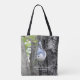 Um bolsa que representa uma nuthatch de peito branco, marcando sua assinatura de cabeça para baixo.