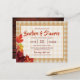 Fogueira divertida e mais convite de festas em uma xadrez e design de madeira com folhas do outono.