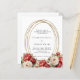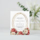 Um fundo branco decorado com rosas vermelhos e brancos, florais. Uma falsa estrutura oval dourada. Personalize e adicione seus nomes e detalhes. 1 folha = 1 convite impresso de borda a borda.