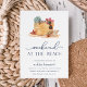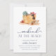 O convite para o fim de semana da praia Chic é perfeito para a solteira, viagens de meninas e muito mais! Summery design apresenta uma ilustração aquosa de uma bolsa de praia aninhada na areia, com óculos escuros, chinelos e conchas. Personalize com seus detalhes de praia numa mistura de chic de serif clássica e serif moderna.