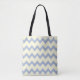bolsa de praia de na moda com design de diafragma azul e branco.